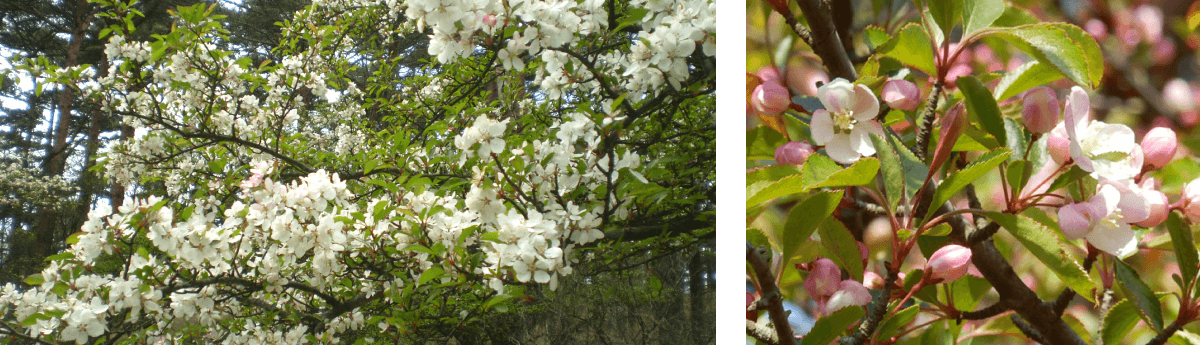 リンゴの花とサクラの花をあわせたような、清楚で可憐な美しい花です。