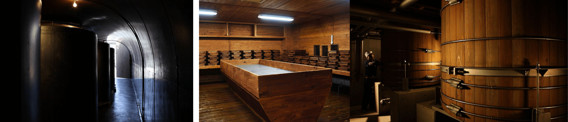 手造り麹、木桶仕込み、木樽蒸溜、洞窟貯蔵という